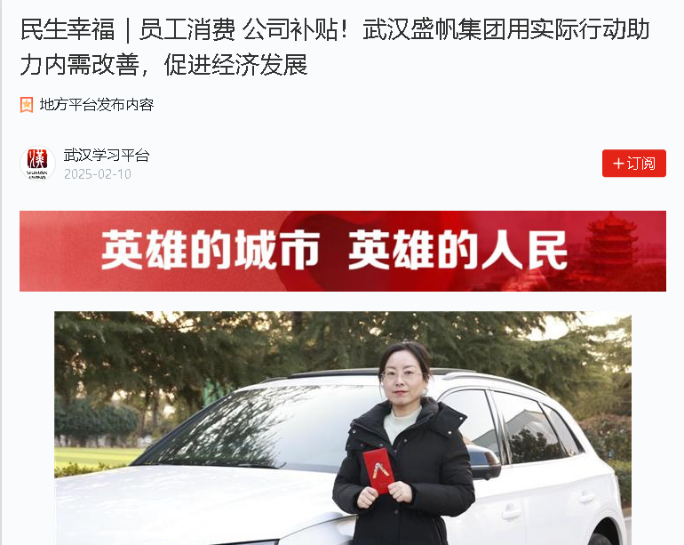 前腳剛提到新車,公司發(fā)放的10000元消費補貼就到賬了,這讓盛帆集團制造中心的員工歐陽艷很是激動。據(jù)了解,歐陽艷享受的···