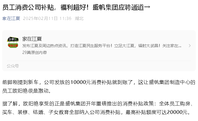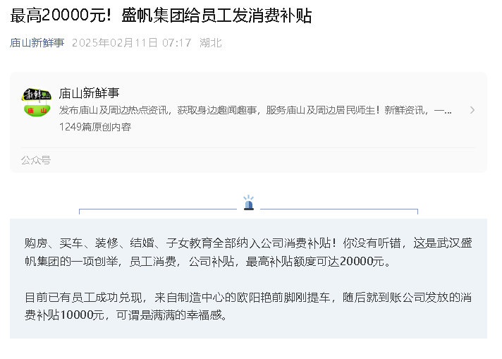 購房、買車、裝修、結(jié)婚、子女教育全部納入公司消費補貼!你沒有聽錯,這是武漢盛帆集團的一項創(chuàng)舉,員工消費,公司補貼···