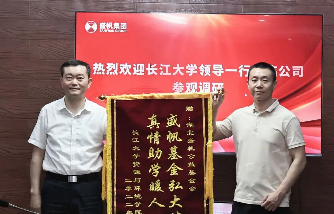 為感謝盛帆集團捐贈長江大學(xué)50萬元愛心善舉,進一步加強雙方在科技創(chuàng)新和人才培養(yǎng)等方面的交流合作,6月2日,長江大學(xué)黨委副書記敖廷華,長江大學(xué)資源與環(huán)境學(xué)院院長文志剛,長江大學(xué)資源與環(huán)境學(xué)院黨委書記張科,長江大學(xué)資源與環(huán)境學(xué)院黨委副書記范梅英一行來到盛帆集團參觀調(diào)研。盛帆集團董事長李中澤,盛帆集團常務(wù)副總裁、盛帆股份總經(jīng)理劉慶玉,盛帆集團財務(wù)總監(jiān)唐銳,盛帆公益基金會秘書長王紅,盛帆股份能效事業(yè)部銷售經(jīng)理呂春霞陪同調(diào)研。