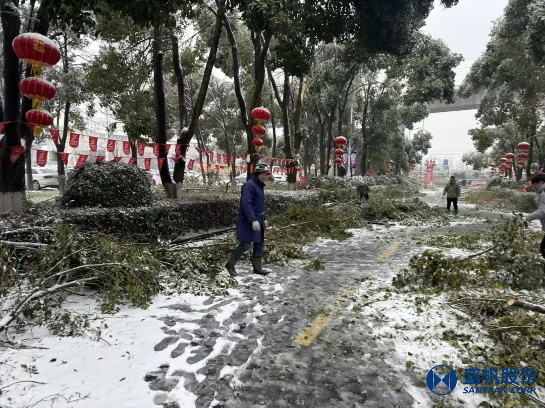 自2月3日起,由于連日來(lái)遭遇凍雨、降雪天氣,盛帆園區(qū)內(nèi)樹(shù)木倒伏、樹(shù)枝被壓斷,員工及家屬出行受到嚴(yán)重影響。